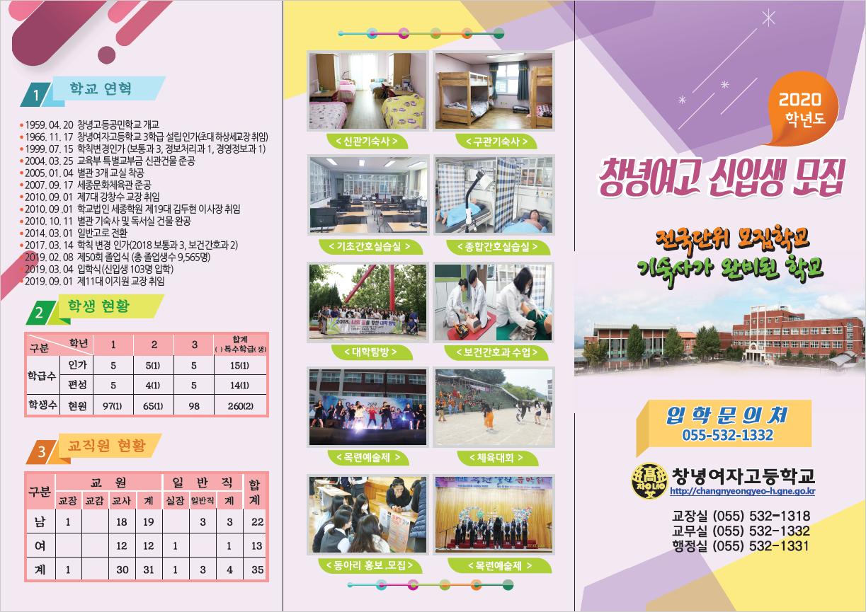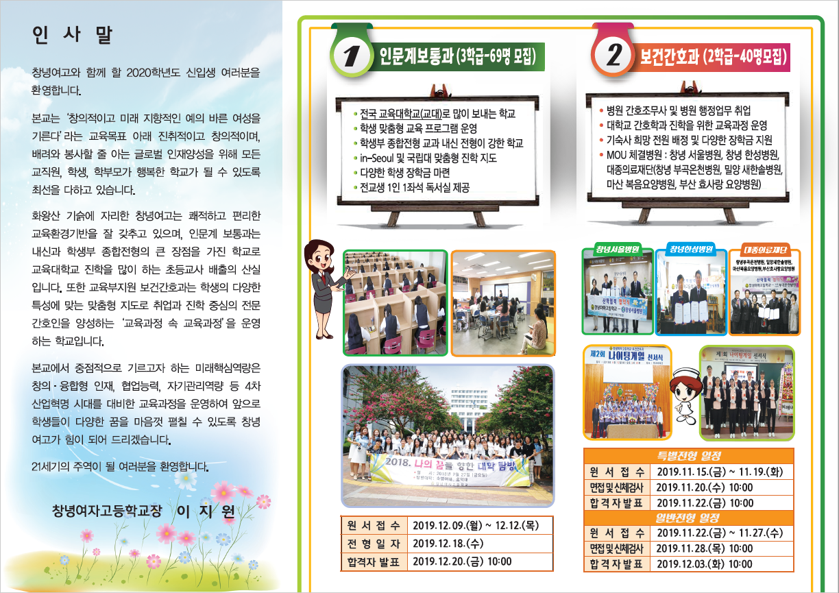 2020. 창녕여고 보통과(3학급-69명)+보건간호과(2학급-40명) 신입생 모집