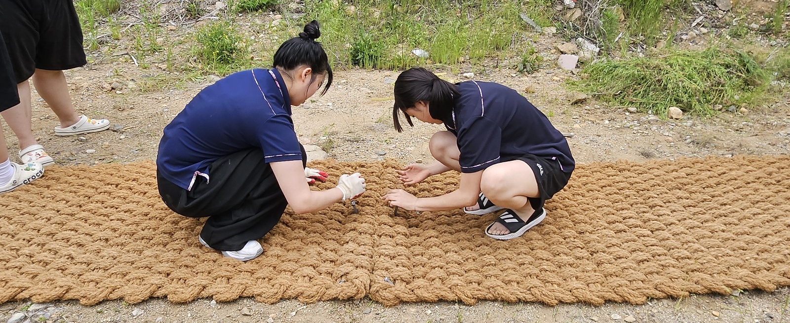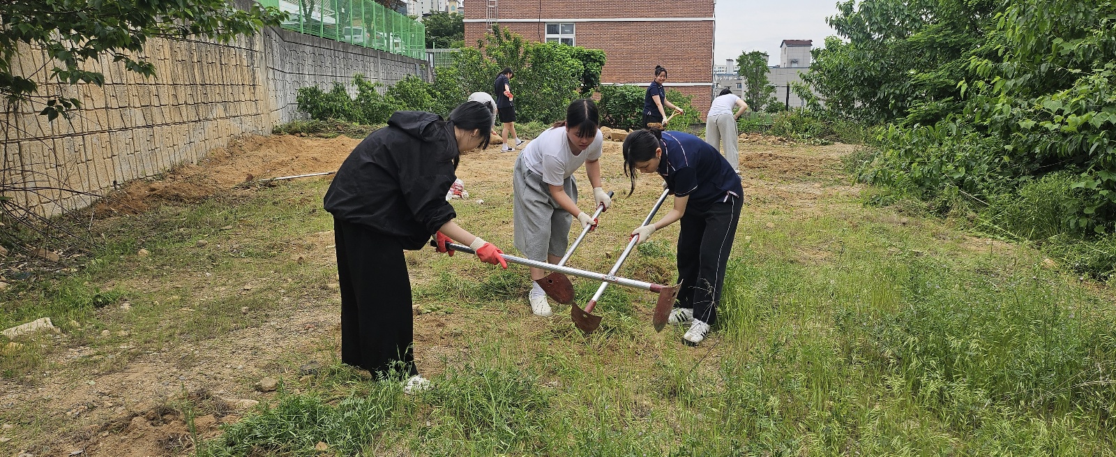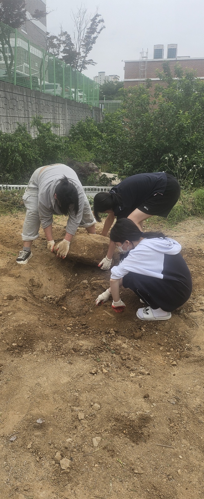 환경보건 동아리(프른 숨) 2학년 학생들이 잡초와 돌로 가득한 공터를 개간하여 텃밭을 만들었습니다.